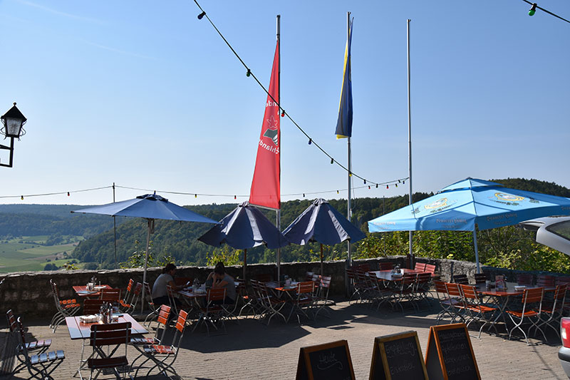 Im Naturfreundehaus in Veilbronn kann man mit einer sagenhaften Aussicht auf das Leidingshofer Tal speisen, auch wenn man vorher nicht im Klettergarten aktiv war.